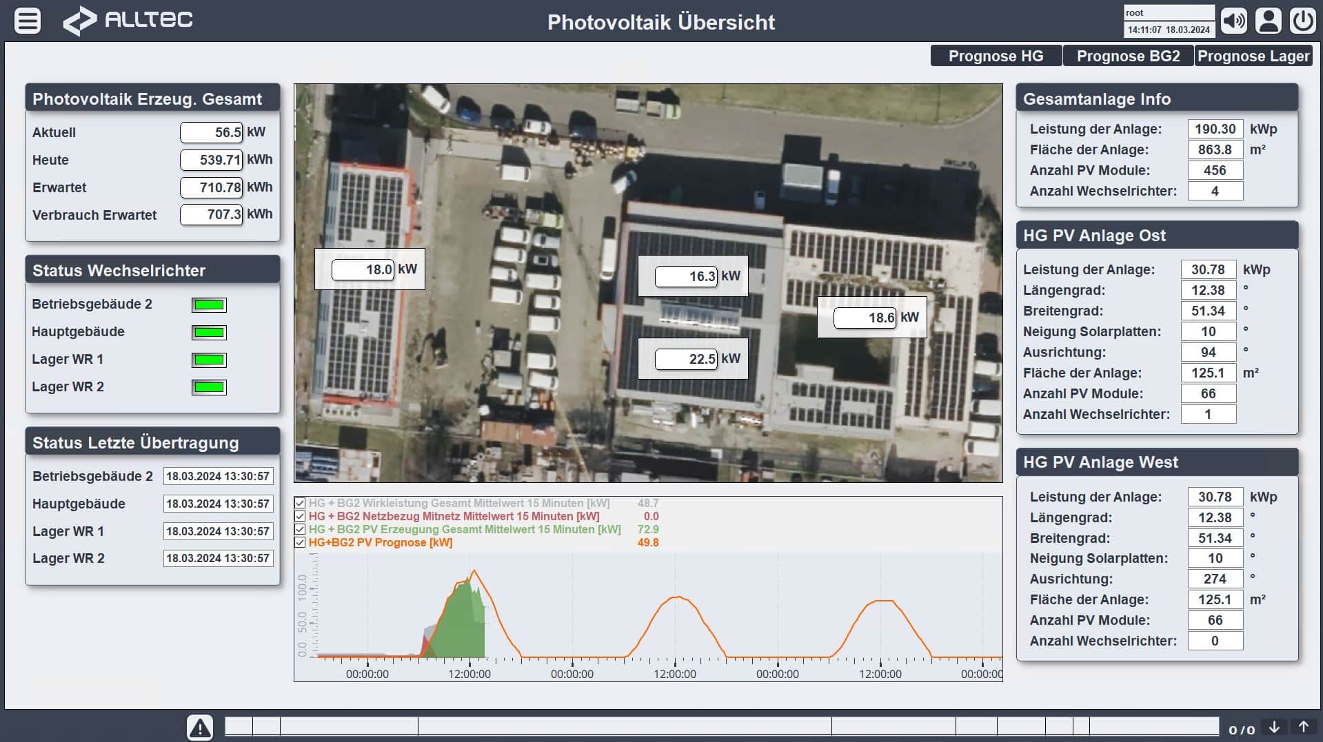 - Erfassung und Visualisierung aller Signale und Messwerte der technologischen Anlage
